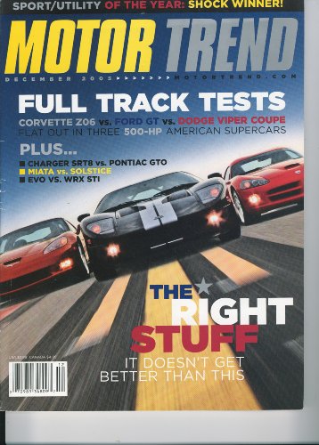 Motor Trend, December 2005 - Track Tests: Corvette ZO6/Ford GT/Viper, Charger SRT8 Vs. Pontiac GTO, Miata Vs. Soltice, EVO Vs. WRX STIBy. It is the time to boost as well as refresh your ability, understanding and experience included some enjoyment for you after long time with monotone things. Working in the workplace, going to research, picking up from test and also even more activities may be completed and you should begin brand-new points. If you really feel so worn down, why do not you try brand-new point? A quite simple thing? Reading Motor Trend, December 2005 - Track Tests: Corvette ZO6/Ford GT/Viper, Charger SRT8 Vs. Pontiac GTO, Miata Vs. Soltice, EVO Vs. WRX STIBy is what we offer to you will certainly recognize. As well as guide with the title Motor Trend, December 2005 - Track Tests: Corvette ZO6/Ford GT/Viper, Charger SRT8 Vs. Pontiac GTO, Miata Vs. Soltice, EVO Vs. WRX STIBy is the recommendation now.